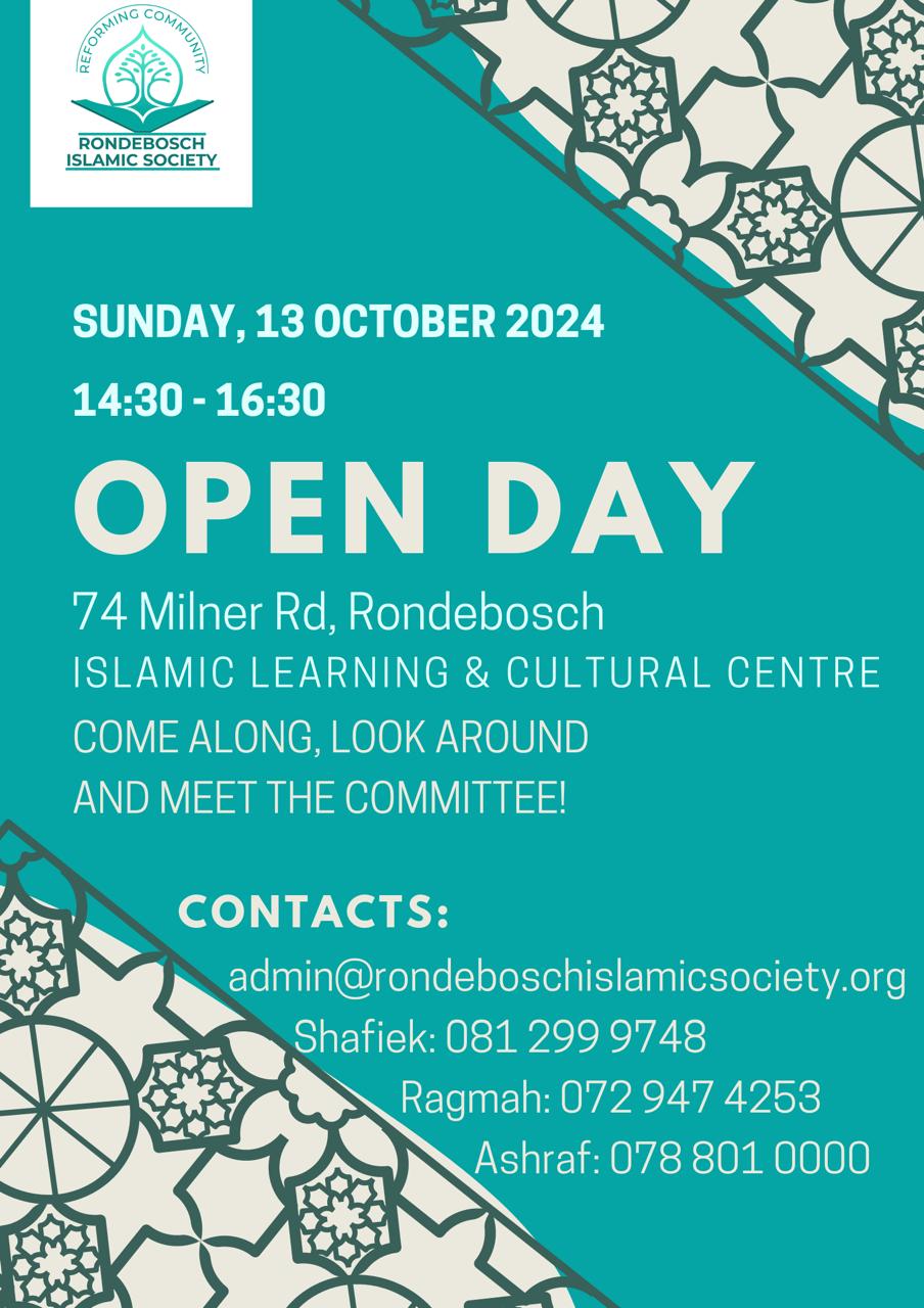 RONDEBOSCH ISLAMIC SOCIETY was established in 2021 by the community with the aims and objective to establish an Islamic Education Centre in the area. One of the objectives is the acquisition of immovable property in Rondebosch or surrounding areas in Cape Town on which to erect a Masjid and such further buildings for the provision of